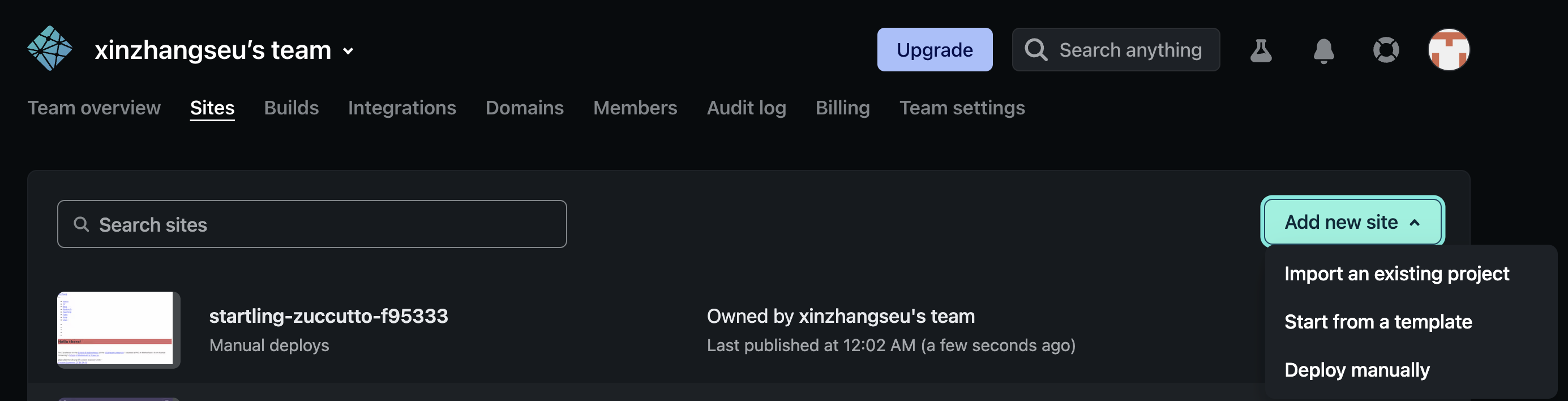 首先,登陆 Netlify > Sites > Add new site > Deploy manually