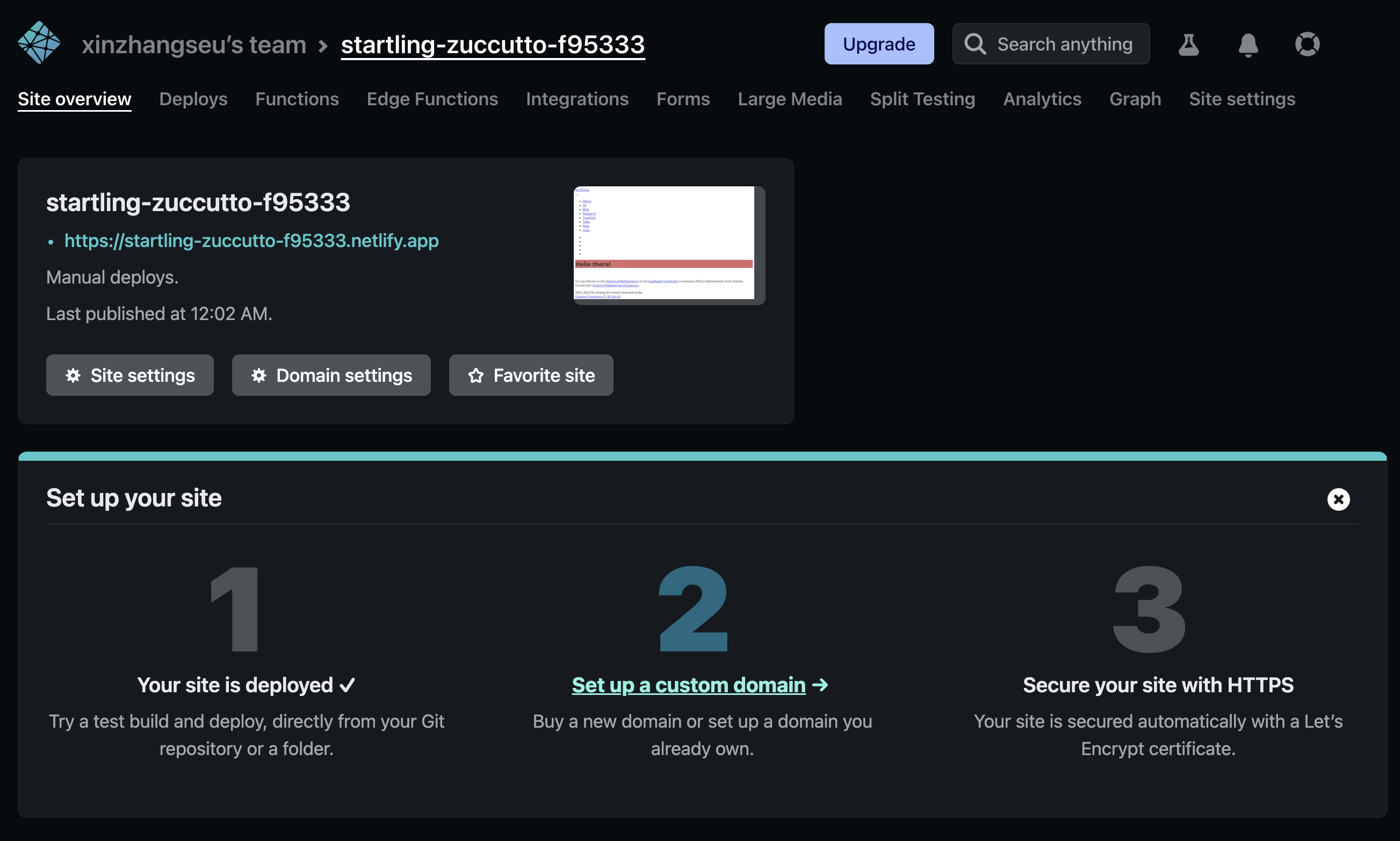 完成上传后,我么看到类似如下 Netlify Site 页面:
